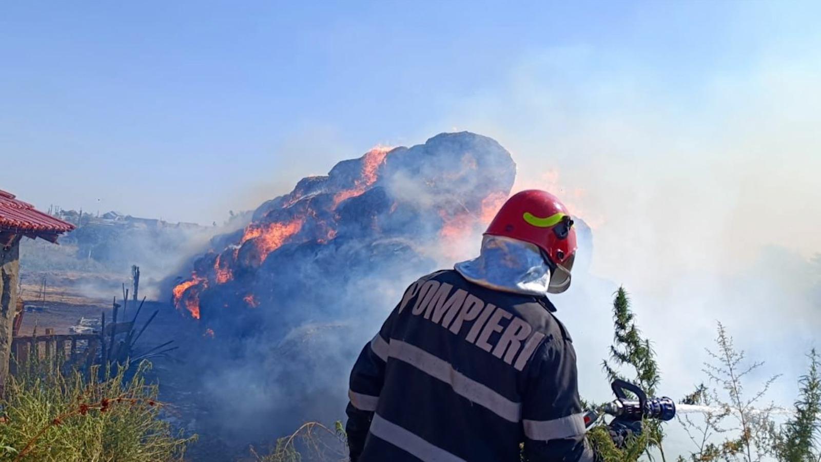 Incendiu violent în Tulcea, după ce 300 de baloţi de paie au luat foc. Vâlvătaia puternică ameninţa să se extindă la o casă