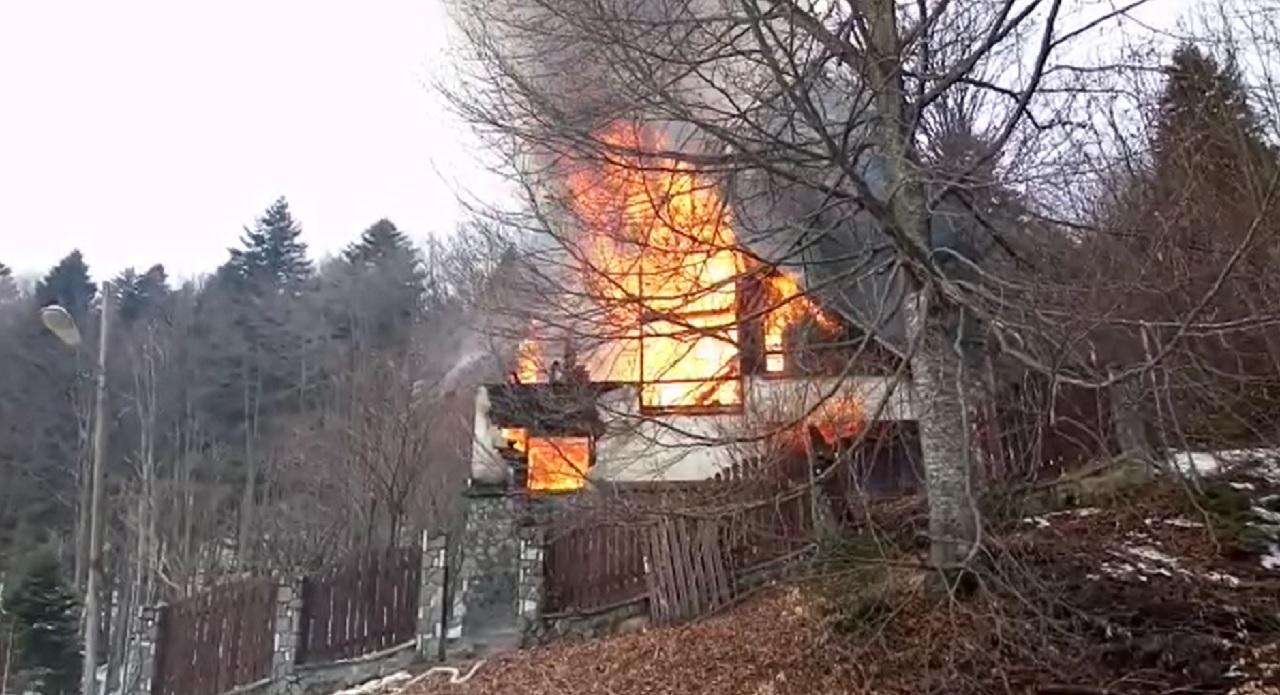 INCENDIU VIOLENT, la Sinaia. O casă a fost cuprinsă de flăcări, proprietarul este în stare de şoc (FOTO)