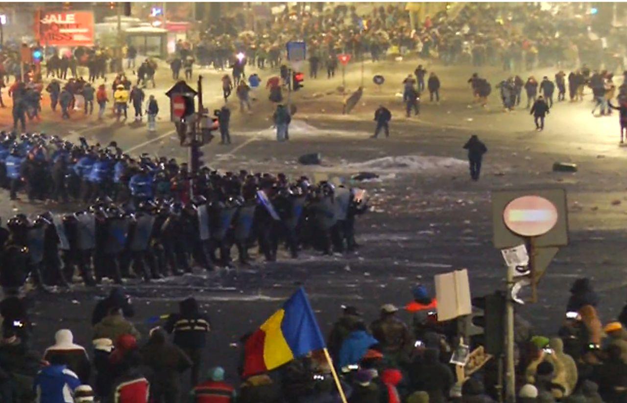 VIOLENŢE la protestul din Piaţa Victoriei din Capitală: Jandarmii au intervenit cu gaze lacrimogene şi cu bâtele din dotare. 20 de persoane au fost reţinute (FOTO)