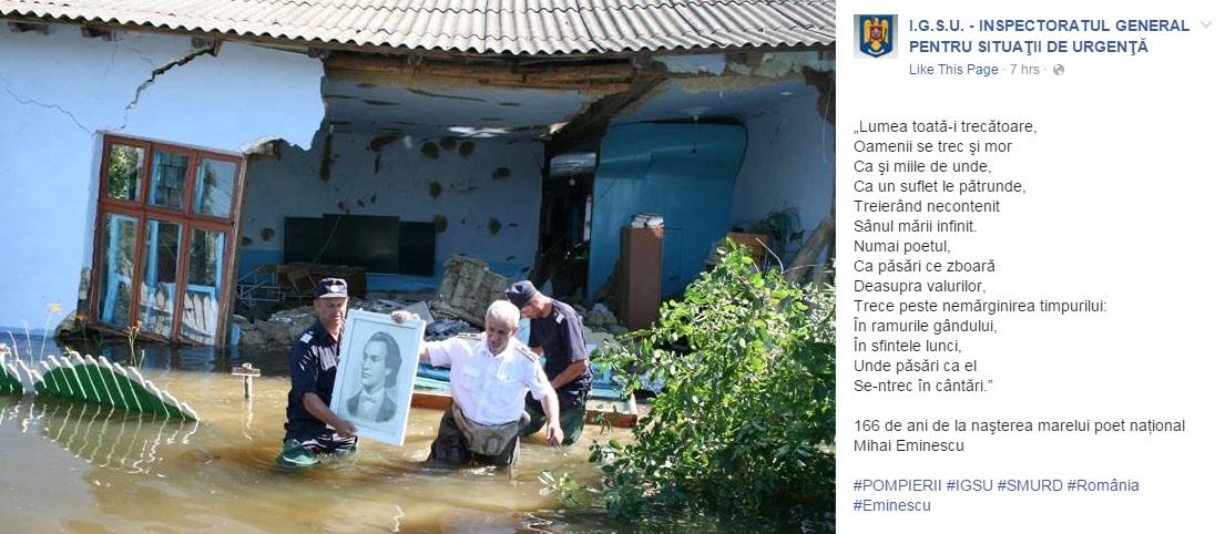 INEDIT! Fotografia lui Eminescu, salvată dintr-o casă inundată. Fotografia, postată pe contul de Facebook al unei instituții publice