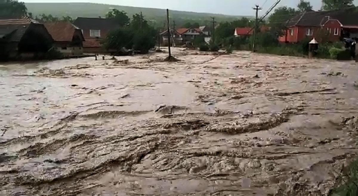 Imagini cu puhoiul de apă care a devastat două localităţi din Bistriţa (Video)