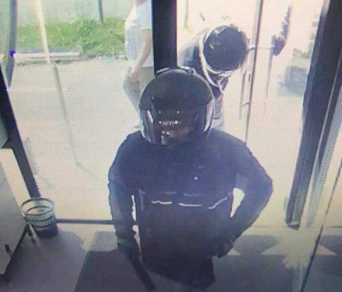 Jaf de un miliard la Baia Mare. Primele imagini cu cei doi tâlhari care au intrat înarmaţi într-o bancă şi au fugit cu un scuter