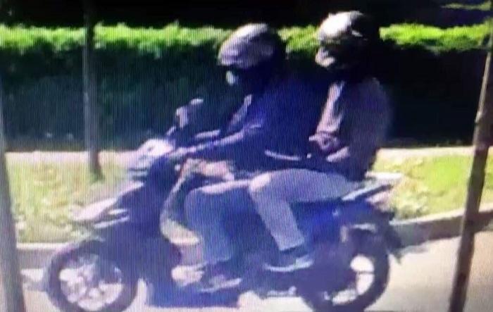 Jaf de un miliard la Baia Mare. Primele imagini cu cei doi tâlhari care au intrat înarmaţi într-o bancă şi au fugit cu un scuter