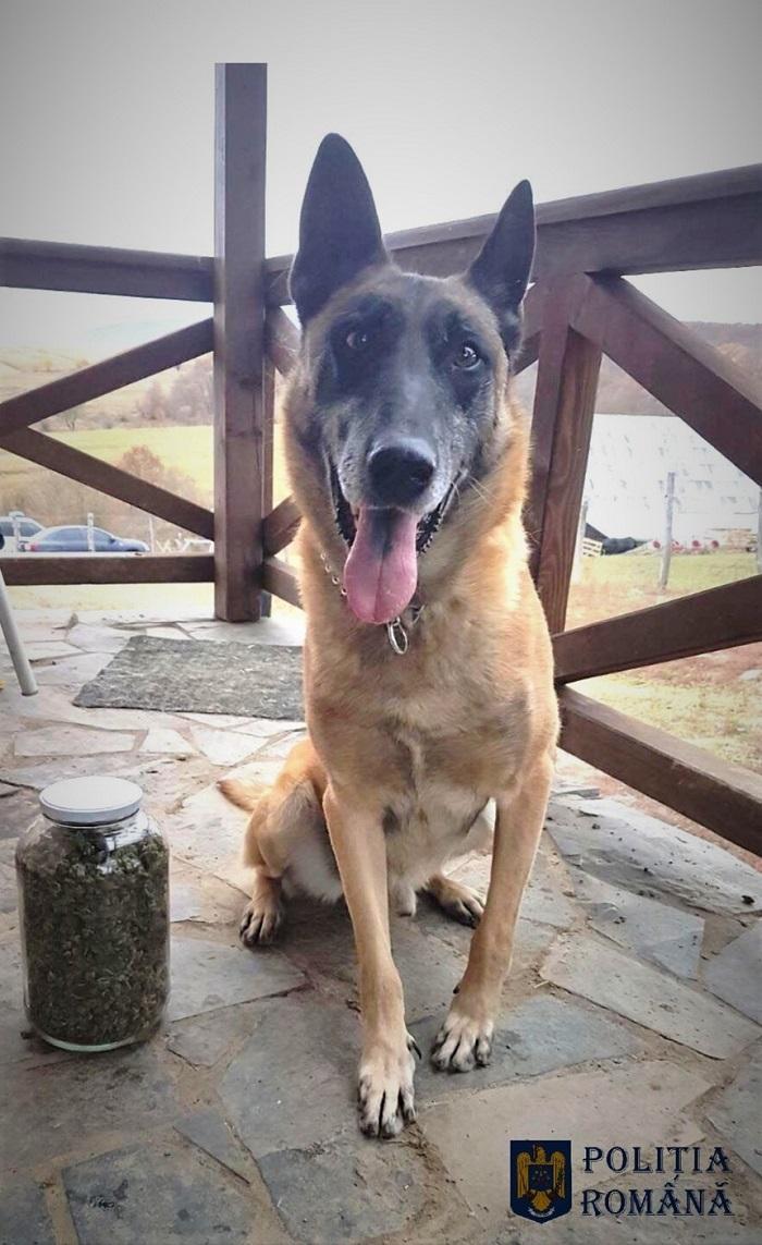 Jumătate de kilogram de DROGURI ascunse într-un borcan, în peretele unei case, găsite în Covasna, de un CÂINE polițist