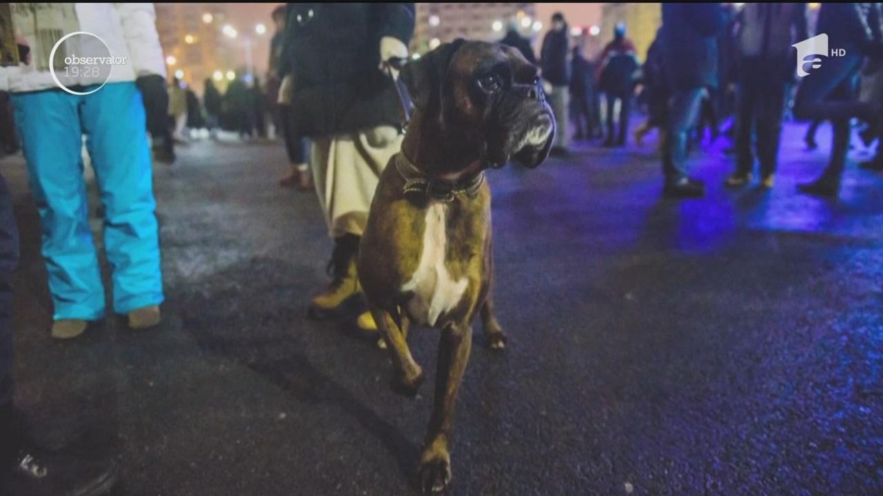 INEDIT! Câinii-protestatari din Piața Victoriei. Au atras atenția și reporterilor de la BBC (VIDEO)