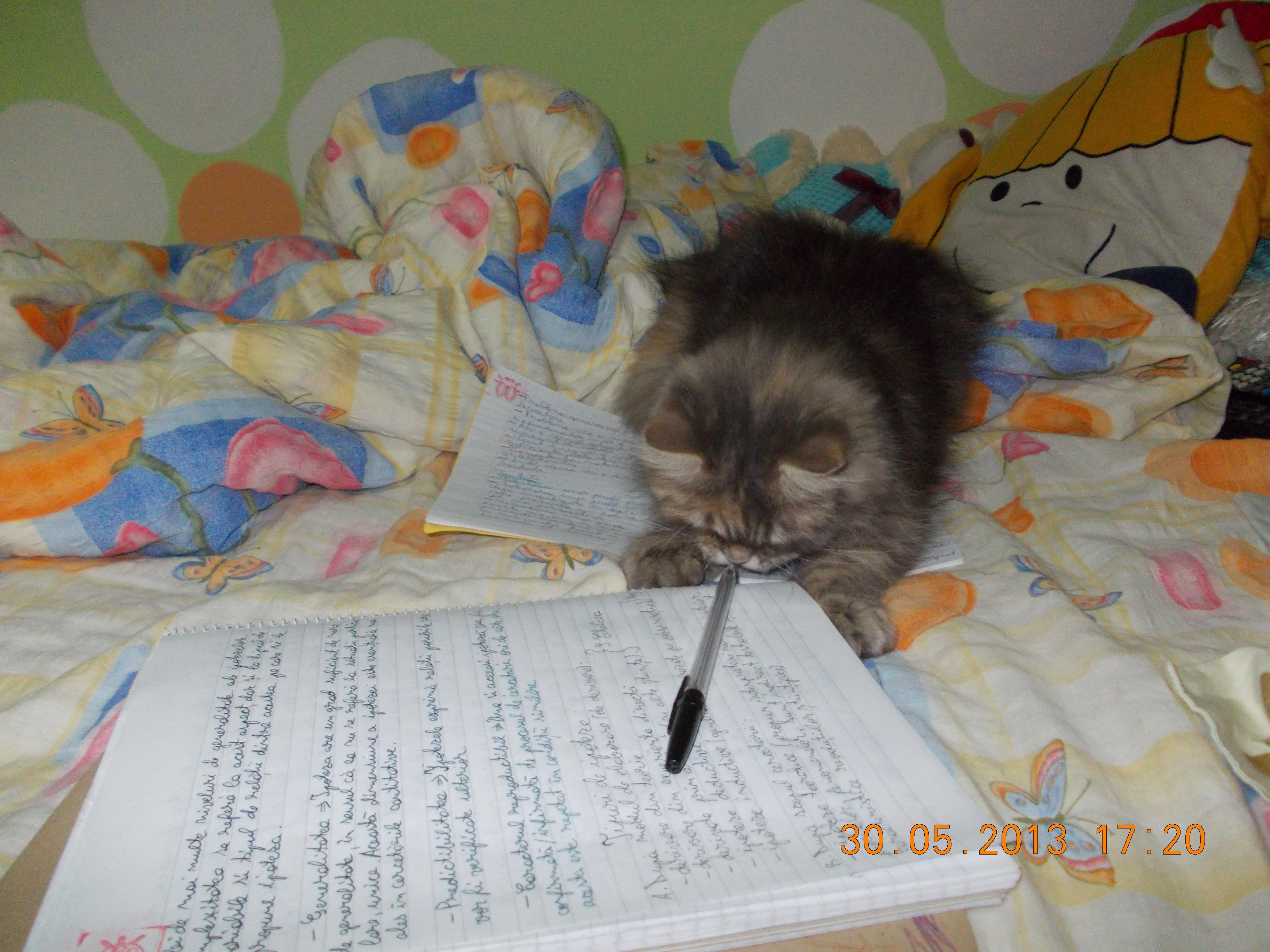 Kitty cu burta pe carte
