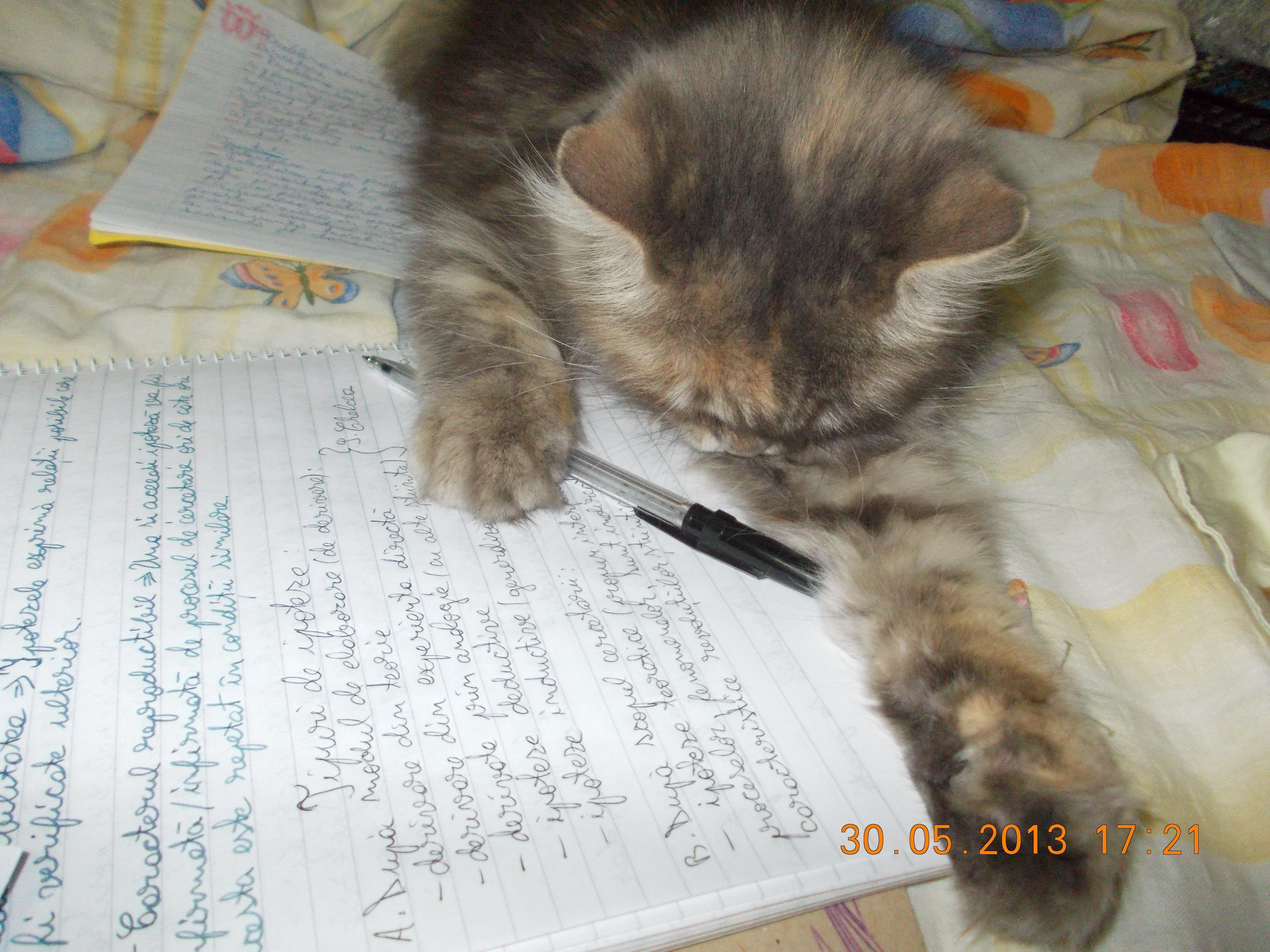 Kitty cu burta pe carte