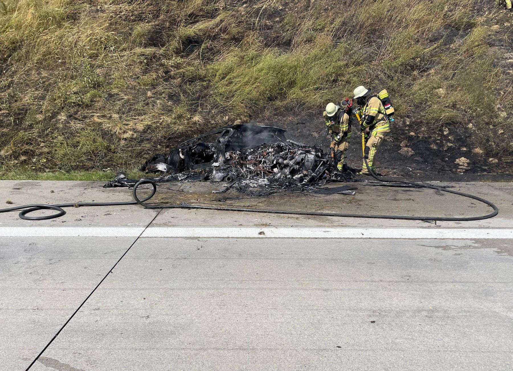 Lamborghini Aventador în flăcări, după o cursă nebună cu peste 200 de km/oră. Bolidul s-a făcut scrum pe autostrada A8 din Germania
