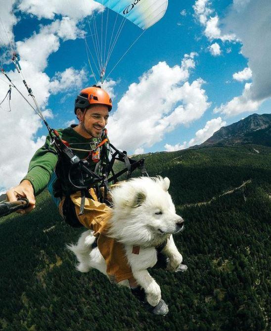 Limita e cerul: câinele Ouka, cel mai bun prieten al unui francez. Cum a început aventura celor doi parapantişti