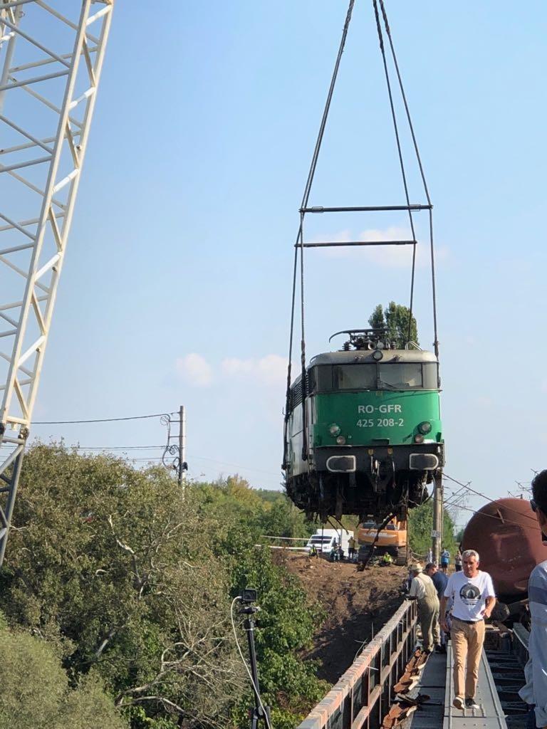 Locomotiva GFR deraiată la Craiova a fost coborâtă după o operațiune complexă. Circulația trenurilor va fi reluată cu restricții de viteză