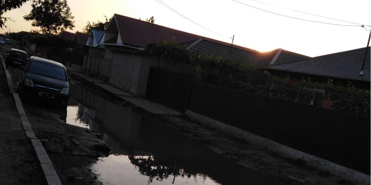 Locuitorii din comuna Modelu, sătui să-şi strice maşinile pe drumurile pline de apă