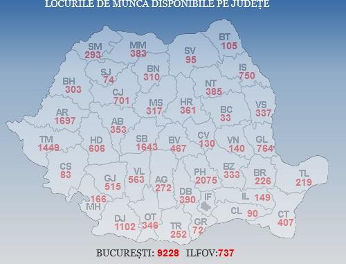 Hartă locuri vacante la nivel naţional, februarie 2018 | Sursa foto: Anofm.ro