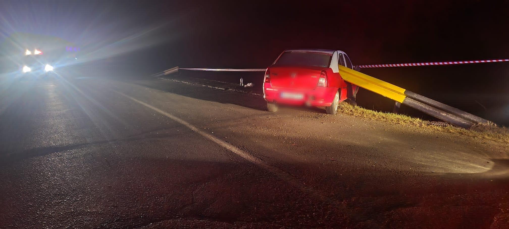 Logan cu trei tineri la bord, străpuns de balustrada metalică pe un drum din Cluj. Șoferul de 34 de ani era băut