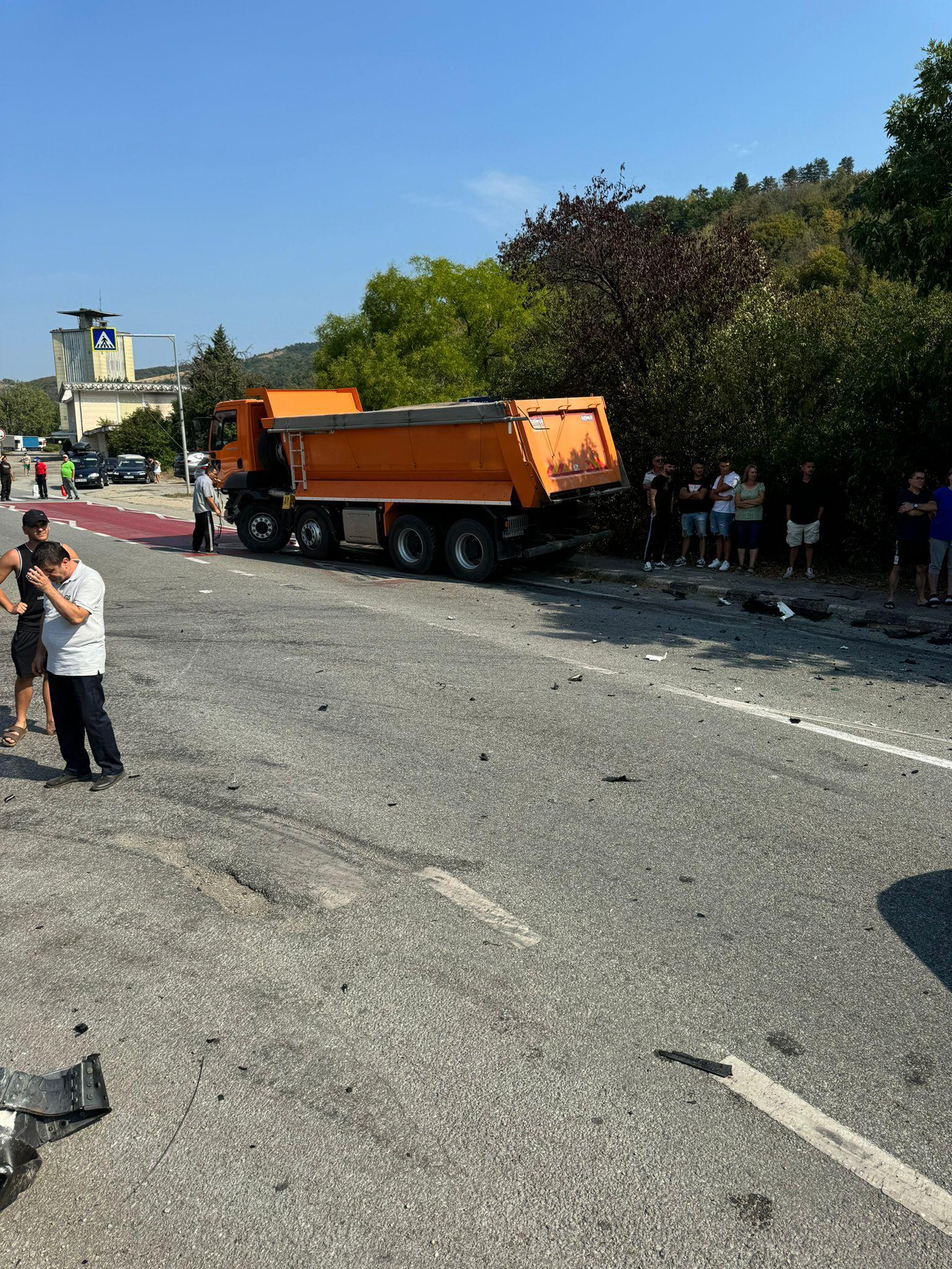 Mai mulţi răniţi, după un accident grav între o basculantă şi două vehicule, în Orşova. Una dintre maşini a devenit morman de fier