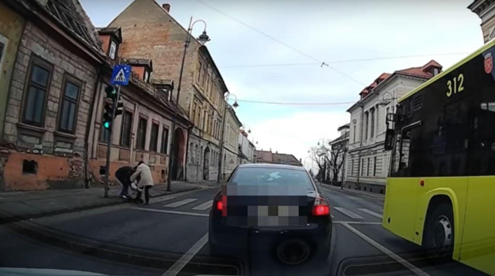 "Mai rar așa oameni". Gest impresionant făcut de un şofer din Sibiu, surprins în imagini. A coborât din maşină şi a ajutat doi bătrânei să treacă strada