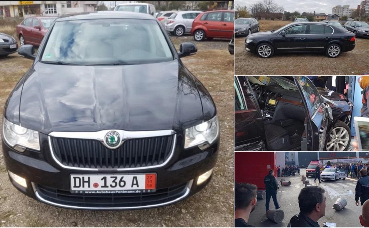 Asta e mașina folosită în atacul de la mall-ul din Brăila. Marius Parfenie a intrat cu Skoda în oameni, după ce l-a înjunghiat pe proprietar | Imaginea 1 din 6 | Galerie Foto