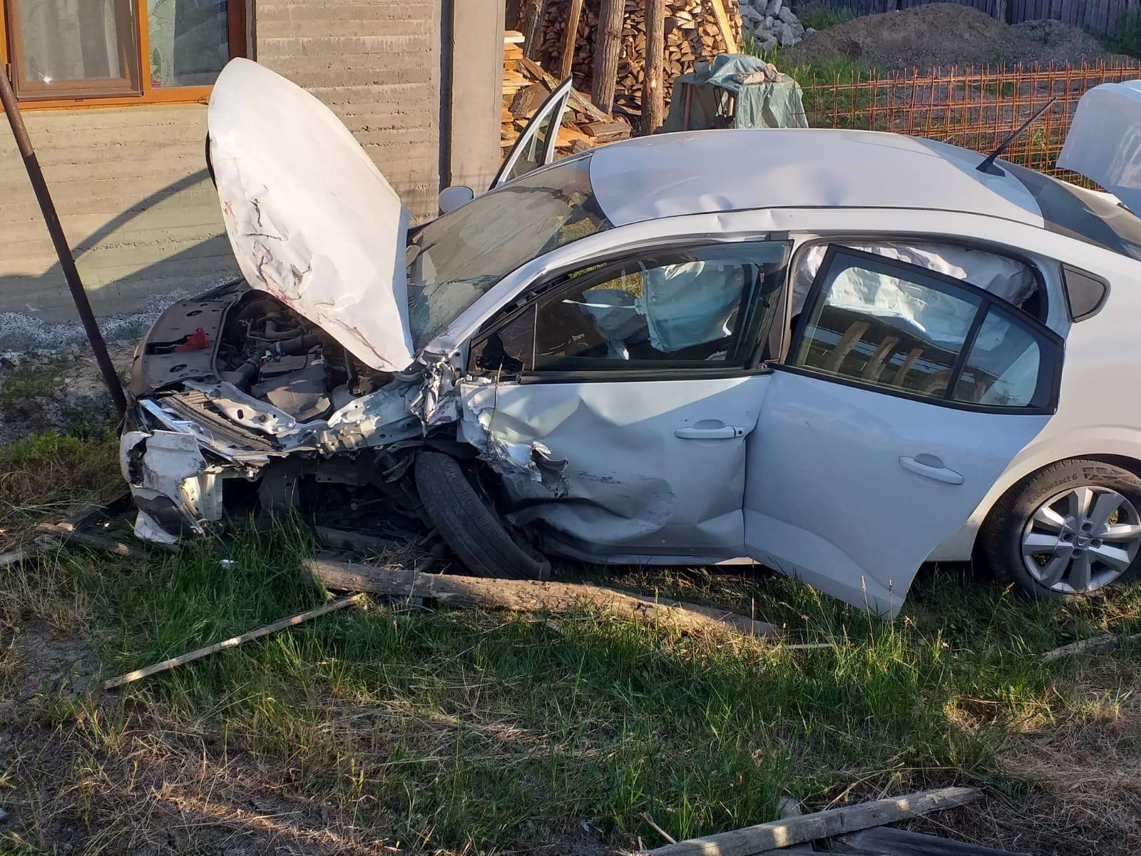 "M-am speriat, puteam să fac infarct". Un șofer neatent din Iași a pierdut controlul volanului și a ajuns în curtea unor localnici, după ce a acroșat o altă mașină