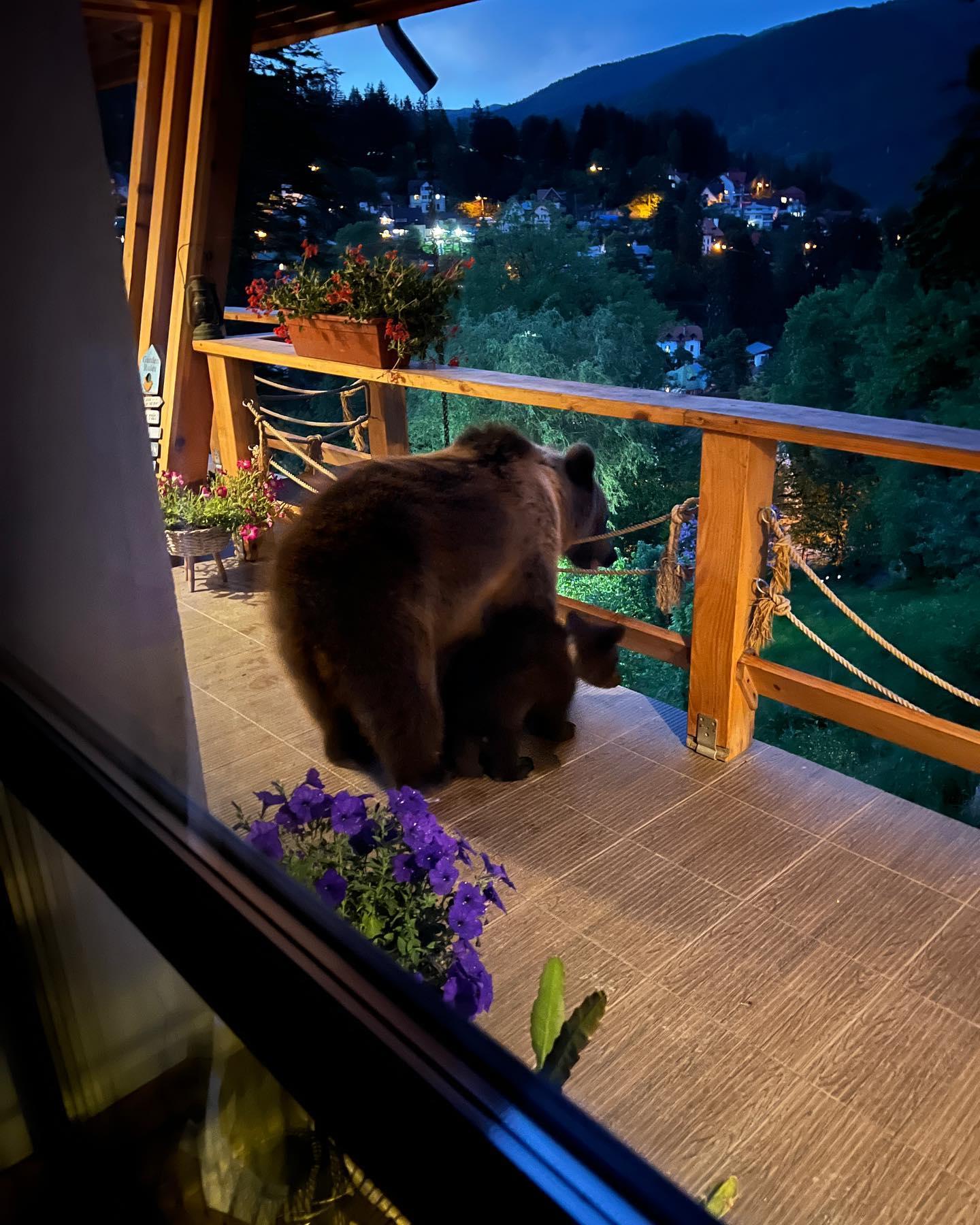 Managerul public din Sinaia s-a trezit pe terasa casei cu o ursoaică cu pui: "Nu-i de glumă! Senzația crește pulsul"