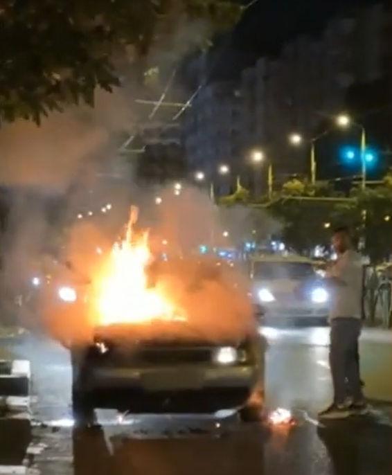 Maşină cuprinsă de flăcări în mers, în Capitală. Şoferul a reuşit să iasă la timp din vehicul