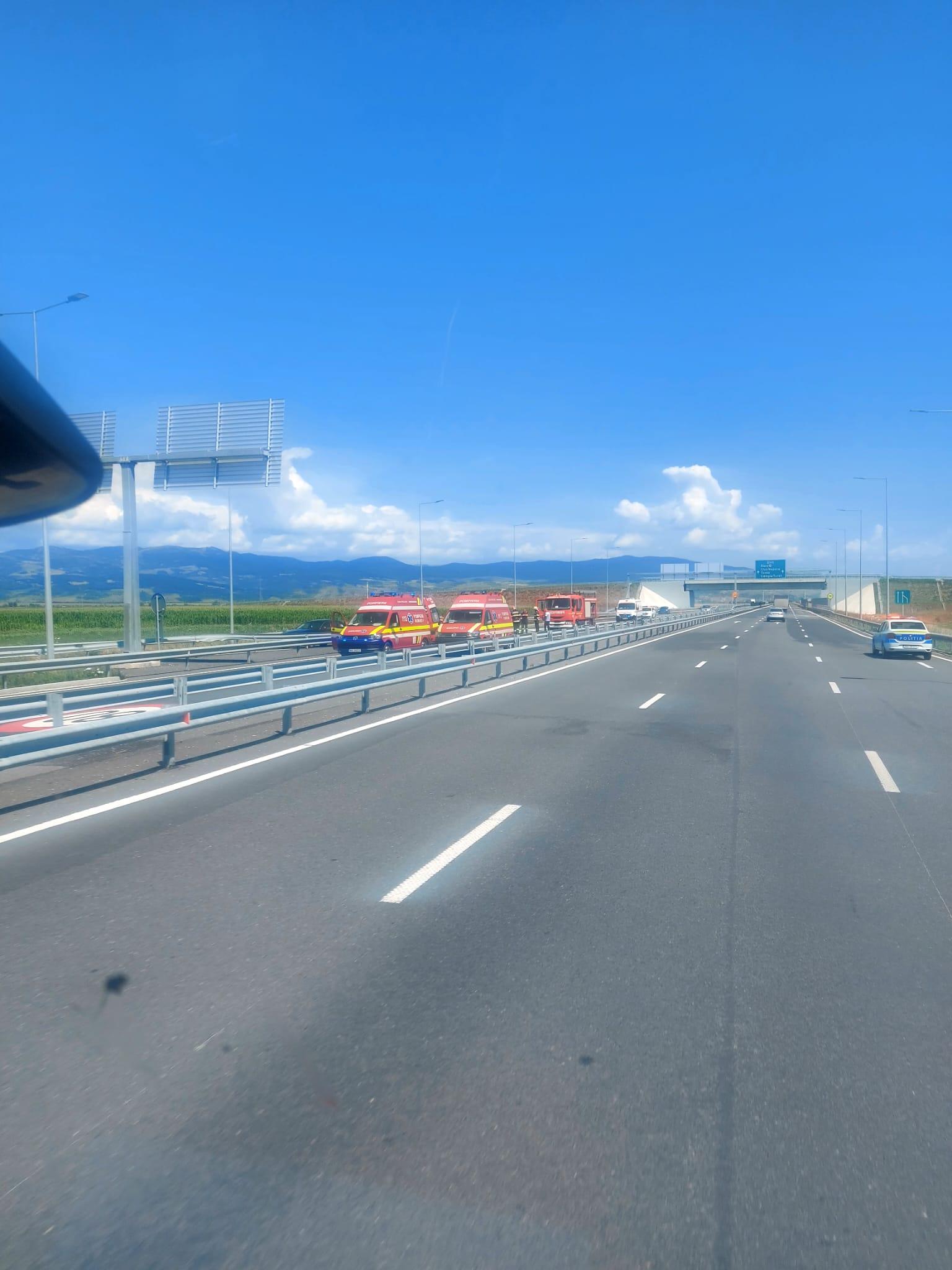 Mașină de la Poliția Autostrăzi, lovită de TIR pe A10, între Alba Iulia și Sebeș. Agenții interveneau la un alt accident