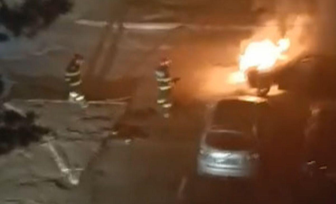 Maşină făcută scrum într-o parcare din Reşiţa. Flăcările ameninţau şi alte autoturisme aflate în jur