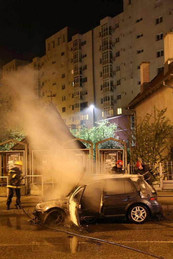 Panică lângă autogara Bacău. Flăcări uriaşe au cuprins o maşină. Şoferul abia coborâse de la volan