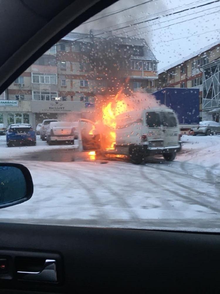 Maşină în flăcări, într-o intersecţie din Bascov! O dubiţă a luat foc în timpul mersului, intervin pompierii (Video)