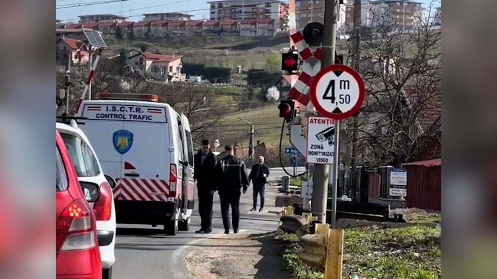 Mașina inspectorilor de la ISCTR Cluj, prinsă sub barieră, după ce șoferul a forțat trecerea de cale ferată de la Apahida. La scurt timp a trecut și trenul | Imaginea 5 din 7 | Galerie Foto
