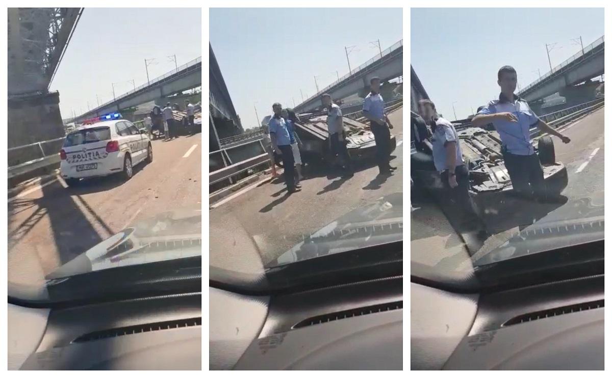Maşină răsturnată pe A2, pe podul de la Cernavodă