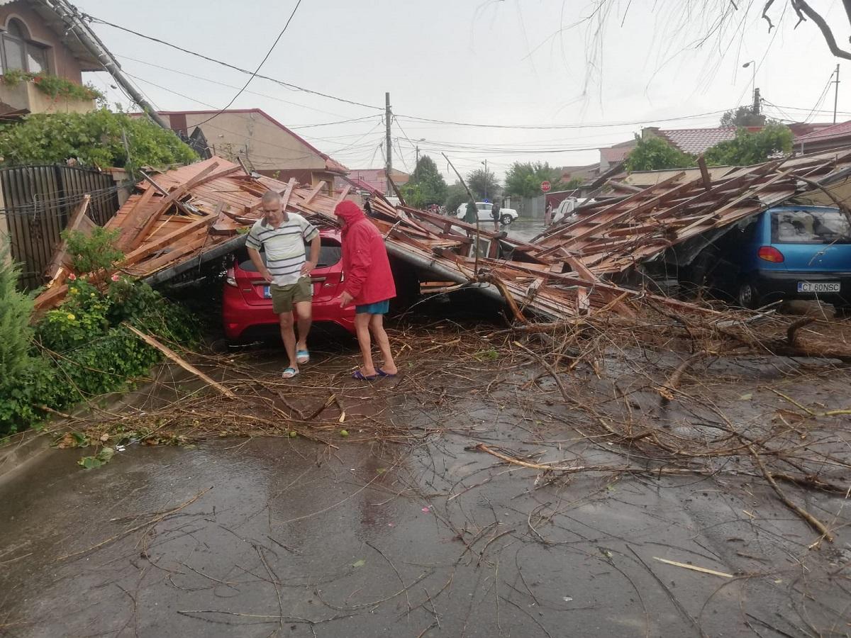Zeci de maşini distruse, copaci smulşi, acoperişuri luate de vânt. Furtuna a lovit cu o forţă devastatoare, în Constanţa (Video)