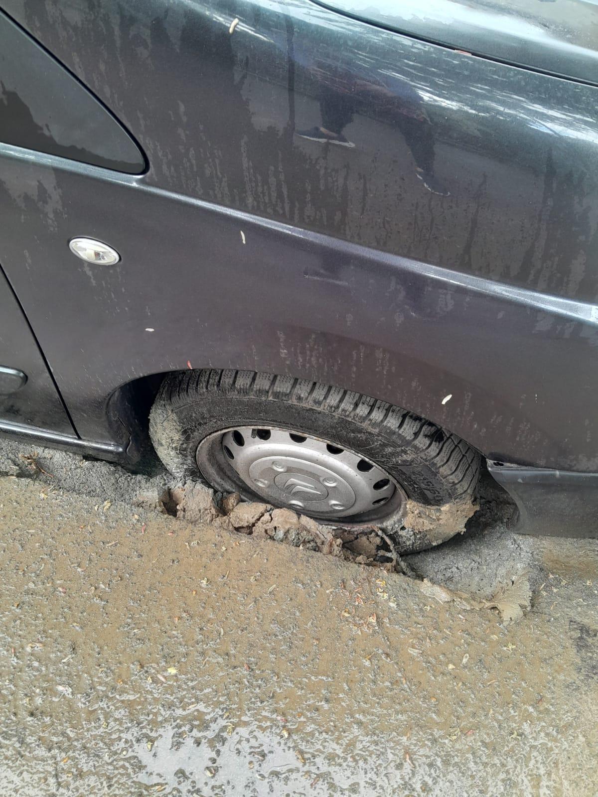 Maşini înghiţite de asfalt pe o stradă în Constanţa, după o lucrare de înlocuire de ţevi. "M-am trezit că mă afund" | Imaginea 4 din 10 | Galerie Foto