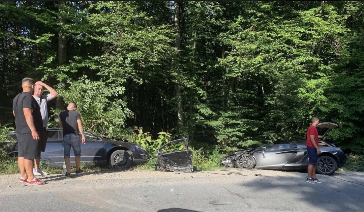 McLaren de 100 de mii de euro făcut praf în pădurea Făget. Bolidul s-a ciocnit cu un VW Passat | Sursa foto: Info Trafic jud. Cluj