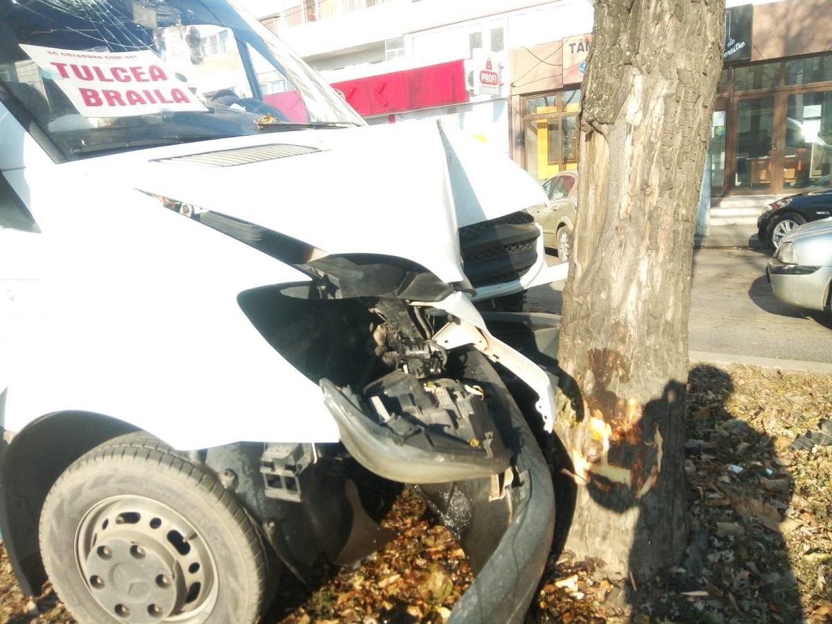 Șoferul unui microbuz de transport persoane a intrat în copac, la Brăila. Sunt 6 victime