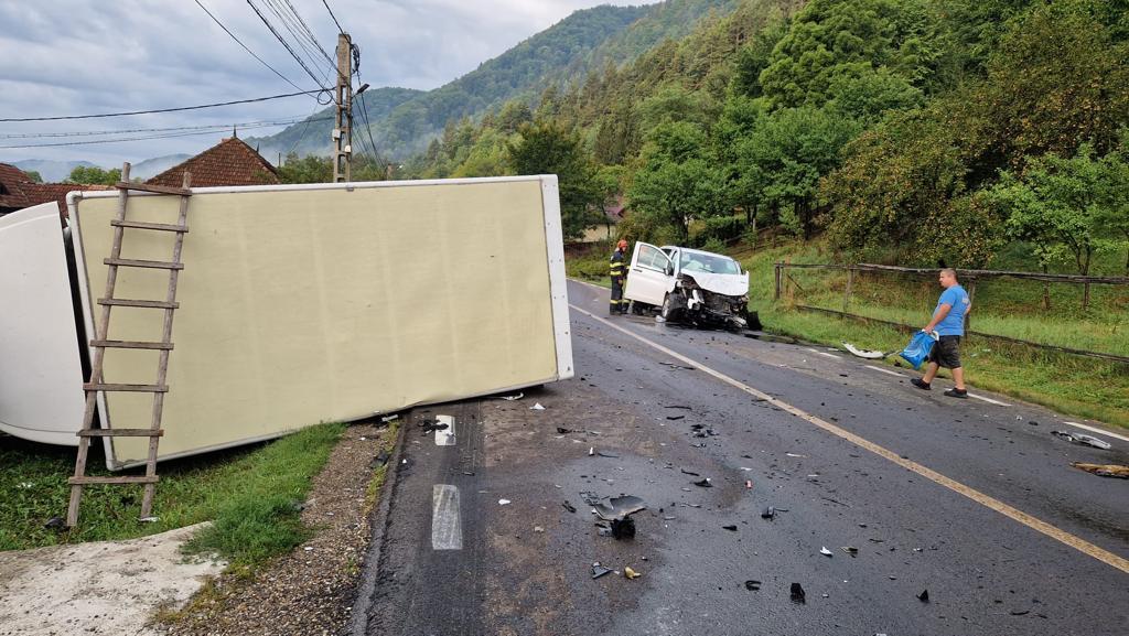 Microbuz cu 2 adulţi şi 7 copii, accident de groază cu un TIR şi o dubă, în Bacău. Mai multe ambulanţe s-au deplasat la faţa locului