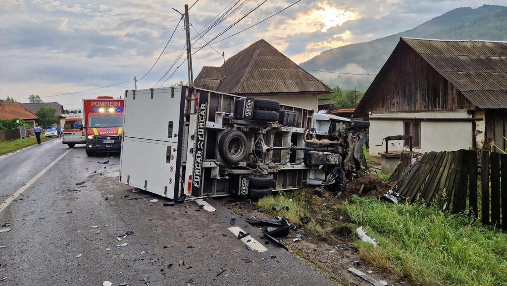 Microbuz cu 2 adulţi şi 7 copii, accident de groază cu un TIR şi o dubă, în Bacău. Mai multe ambulanţe s-au deplasat la faţa locului