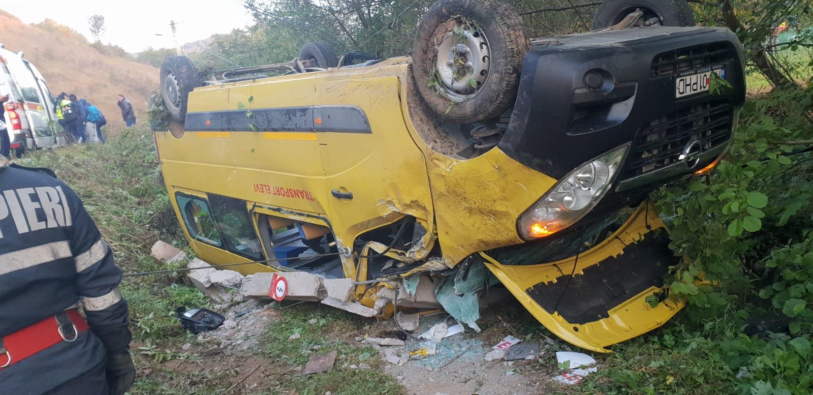 Un microbuz cu elevi s-a răsturnat la Hunedoara. 4 copii la spital, şoferul de 70 de ani ar fi făcut o manevră greşită