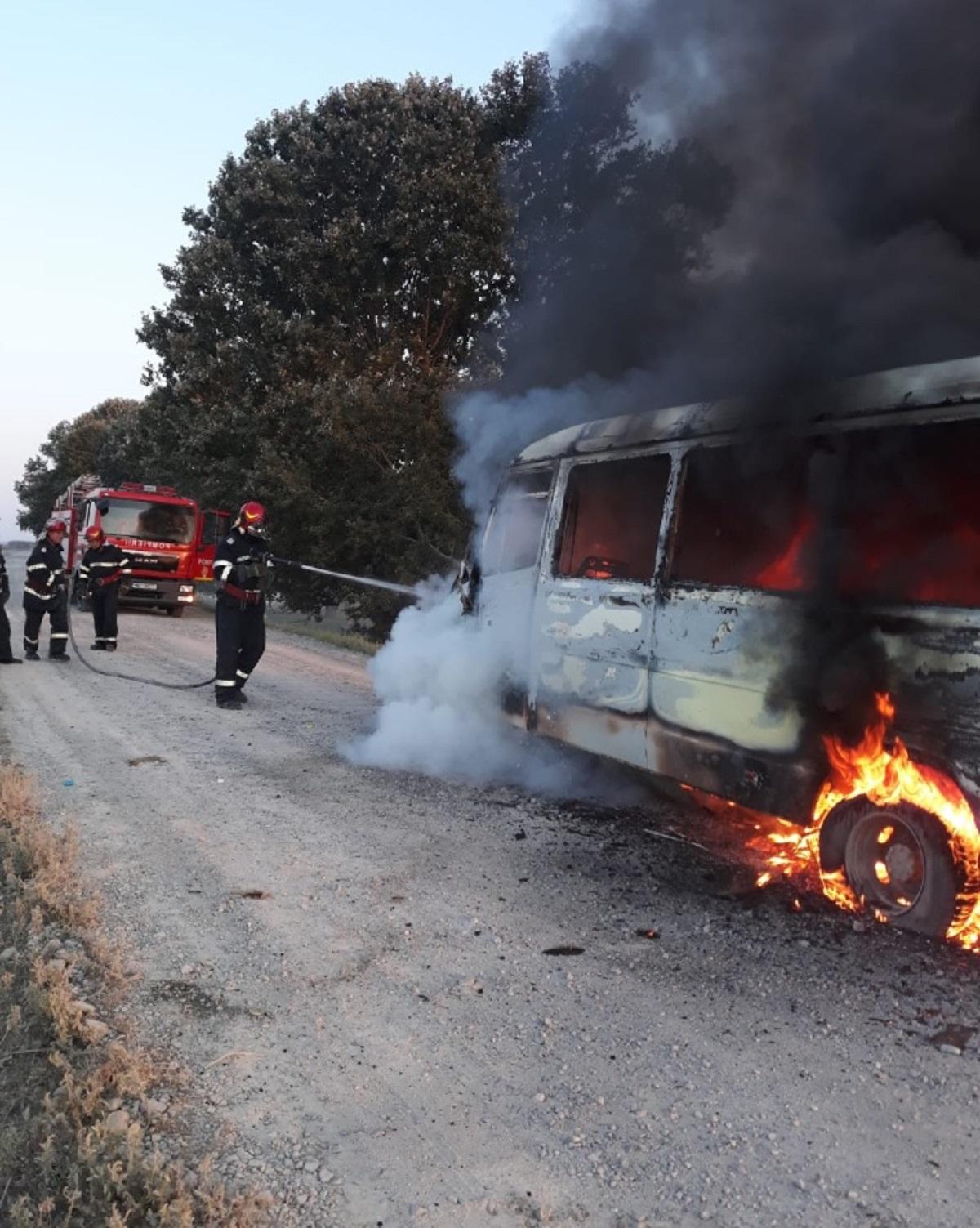 Un microbuz cu pasageri a luat foc în Tulcea. Maşina a ars în totalitate