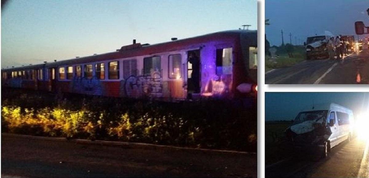 Microbuz plin cu pasageri spulberat de tren, în Timiş. Şoferul nu s-a asigurat la trecerea peste calea ferată
