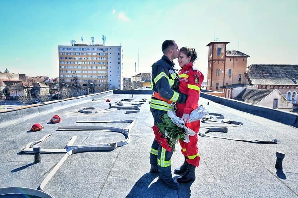 Modul în care un pompier din Timișoara și-a folosit furtunul pentru a-și cere iubita de nevastă: "Vrei să fii soția mea?"