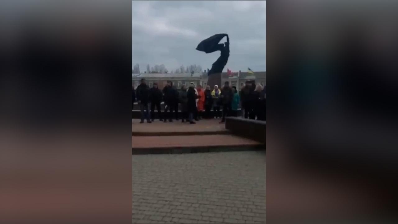 Emoţionat: Locuitorii din Berdeansk cântă imnul național în fața trupelor ruse de ocupație