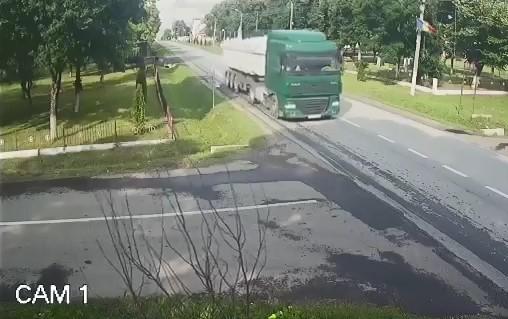Momentul impactului dintre un motociclist şi camion, la Timiş (Video)