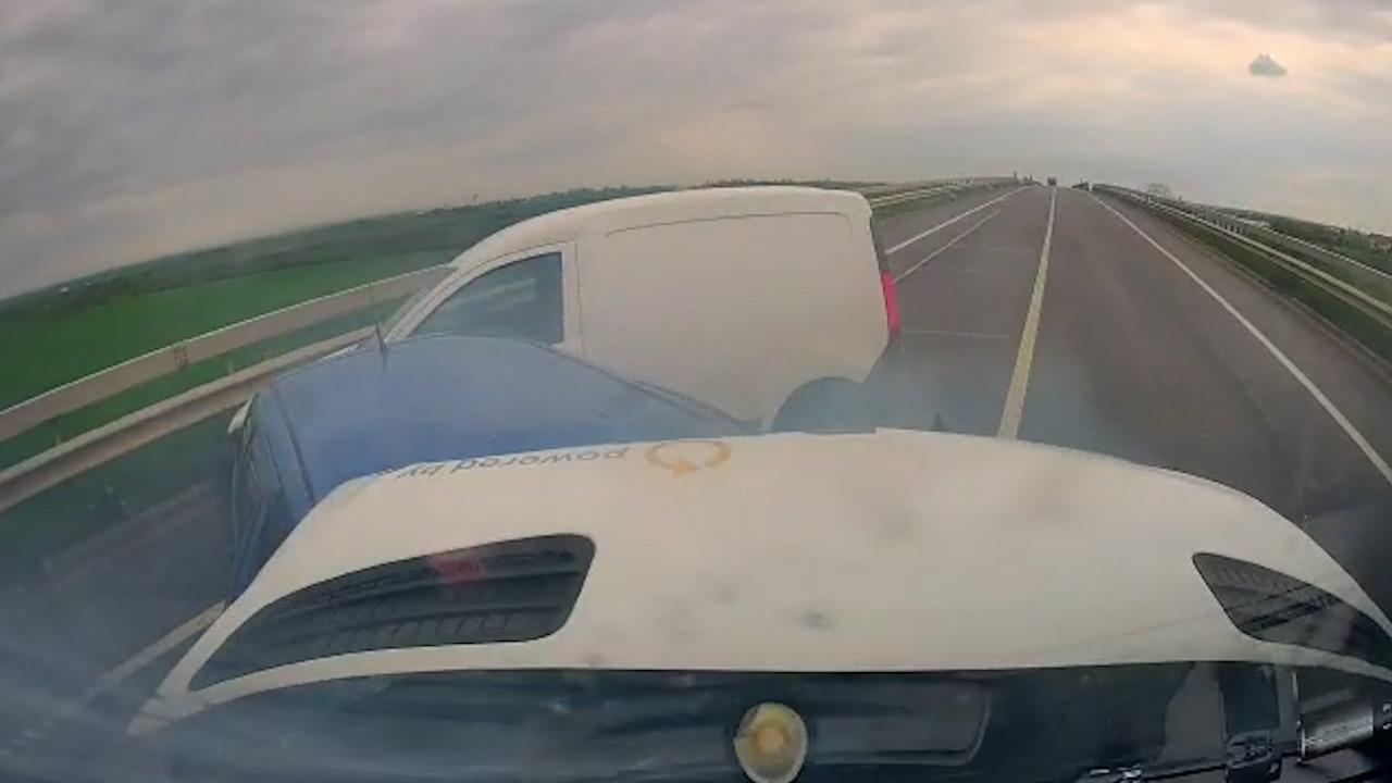 Momentul când o mașină intră în depășire neregulamentară și se izbește în plin de un microbuz, în Timiș. 10 persoane au fost rănite în urma impactului | Imaginea 3 din 10 | Galerie Foto