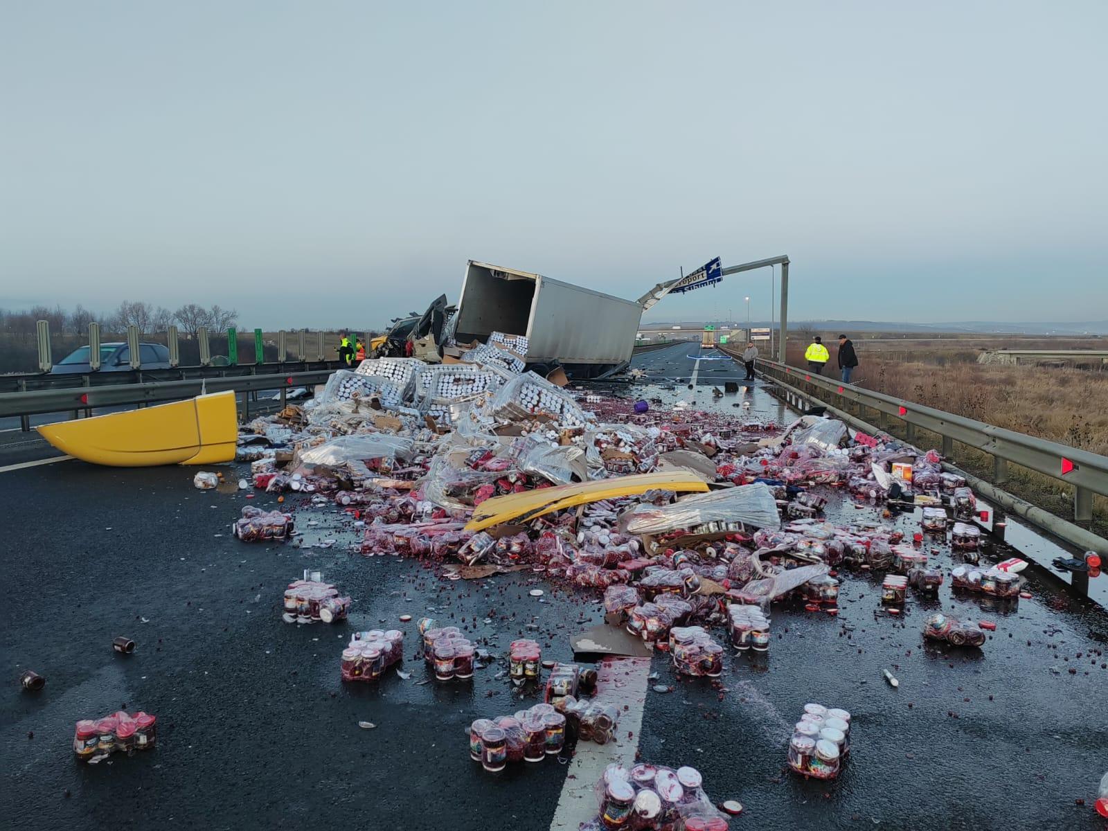 Momentul când roata unui TIR explodează în mers pe A1, surprins de o cameră de supraveghere: Şoferul de 49 de ani a murit, după ce a fost prins sub cabină