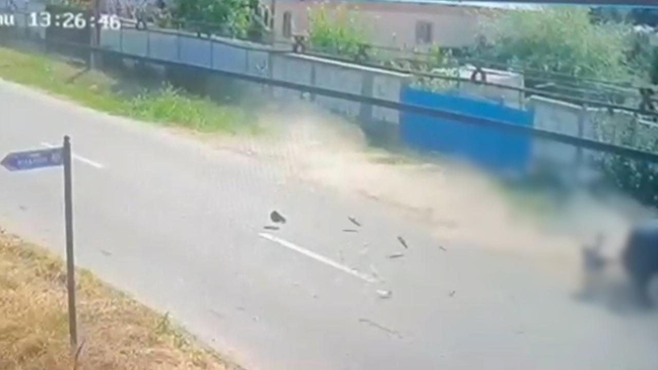 Momentul când un bărbat este izbit în plin de o maşină în Olt. A fost aruncat în aer peste zece metri