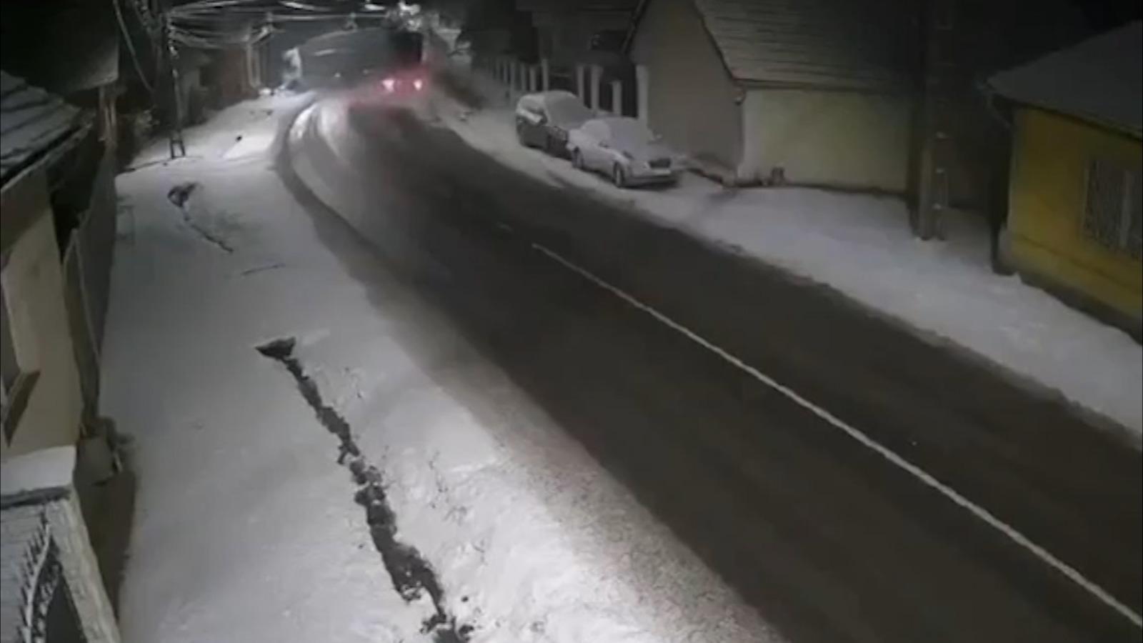 Momentul când un șofer de TIR pierde controlul volanului și distruge o casă în Mureș. O persoană a scăpat ca prin urechile acului de impactul devastator