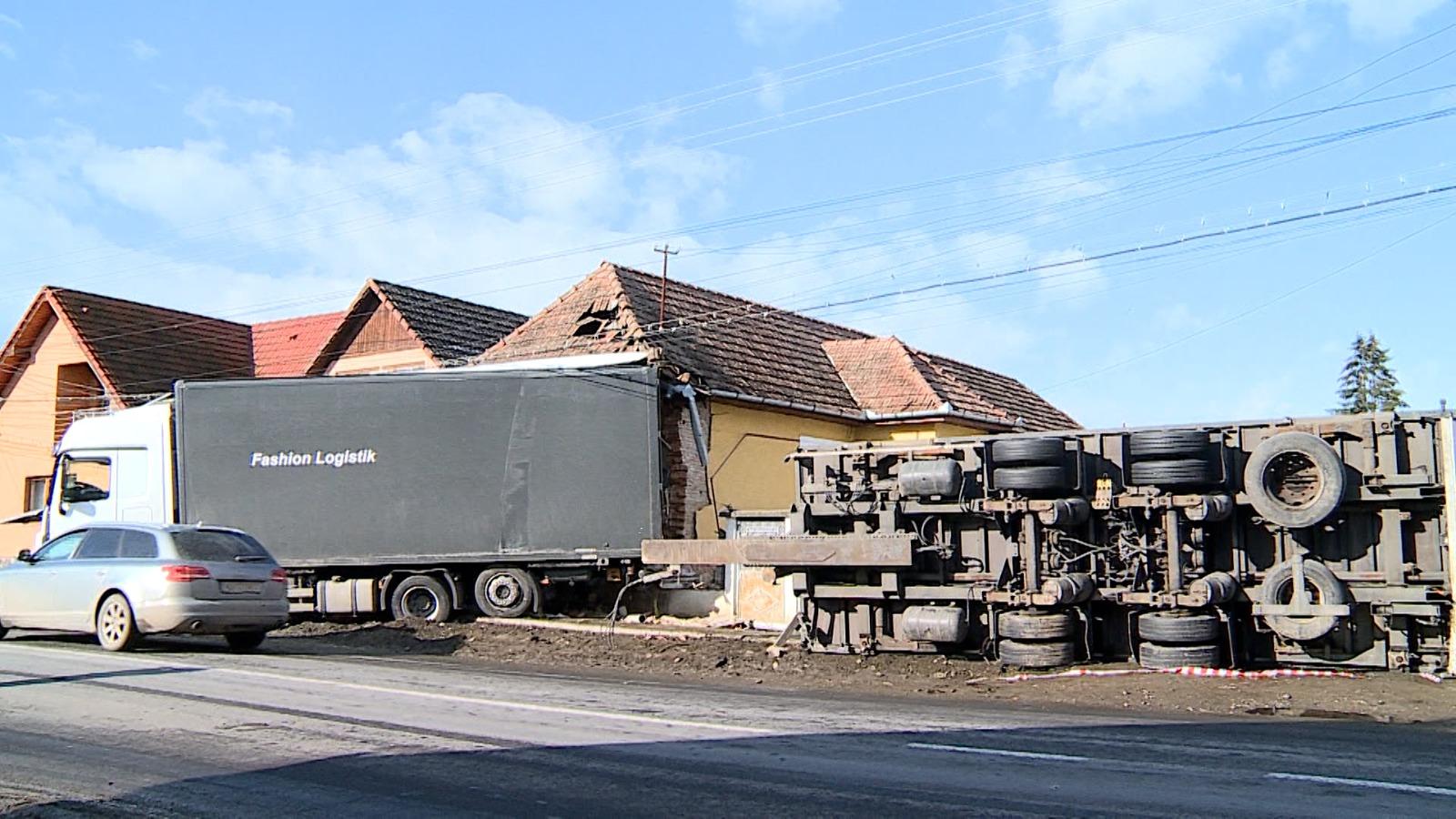 Momentul când un șofer de TIR pierde controlul volanului și distruge o casă în Mureș. O persoană a scăpat ca prin urechile acului de impactul devastator