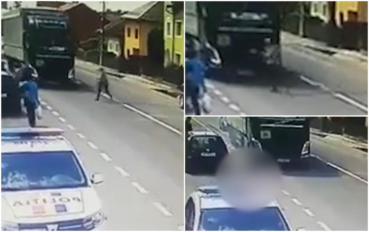 Momentul dramatic când o femeie este lovită de un TIR în timp ce traversa neregulamentar, în Bistriţa-Năsăud