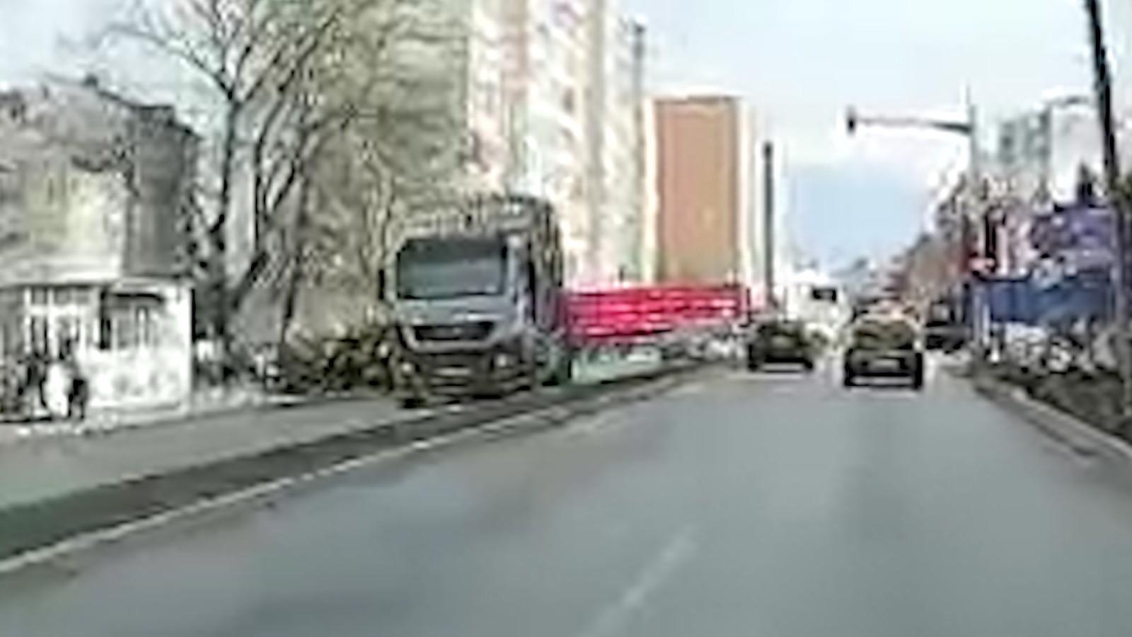 Momentul dramatic când remorca încărcată a unui camion cu bușteni se răstoarnă peste trecători, în Pașcani. Trei persoane au fost rănite | Imaginea 3 din 7 | Galerie Foto
