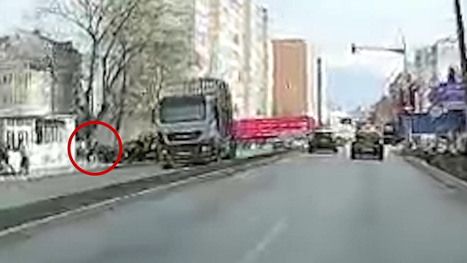Momentul dramatic când remorca încărcată a unui camion cu bușteni se răstoană peste trecători, în Pașcani. Trei persoane au fost rănite