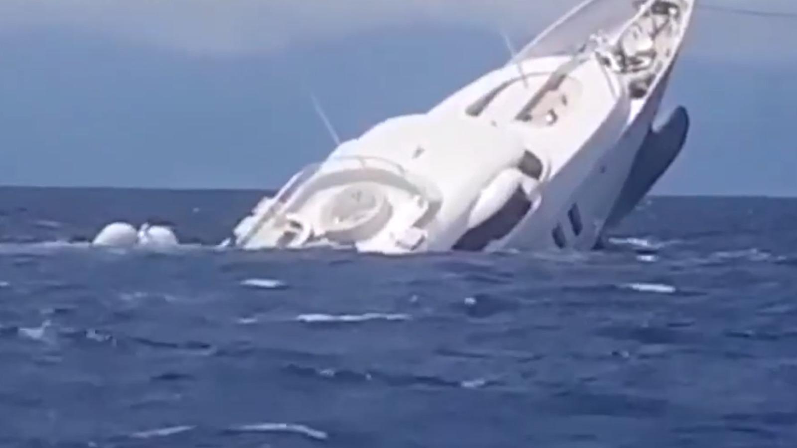 Momentul dramatic când superiahtul „Saga” se scufundă în apropiere de coasta portului Catanzaro, Italia. Cinci persoane aflate la bord, salvate de un echipaj românesc